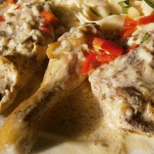 Huhn in Knoblauch - Weinsauce