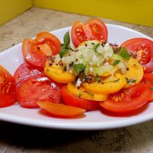 Paradeissalat mit Basilikum und Rosmarin
