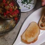 Eine Variation des italienischen Brötchenklassikers Bruschetta. Die Tomaten werden mit gebratenen Steinpilzen und Kräutern auf getoastetem Knoblauchbrot möglichst warm serviert. Ein Rezept das als Vorspeise oder als Fingerfood Erinnerungen an den Urlaub im Süden weckt.
