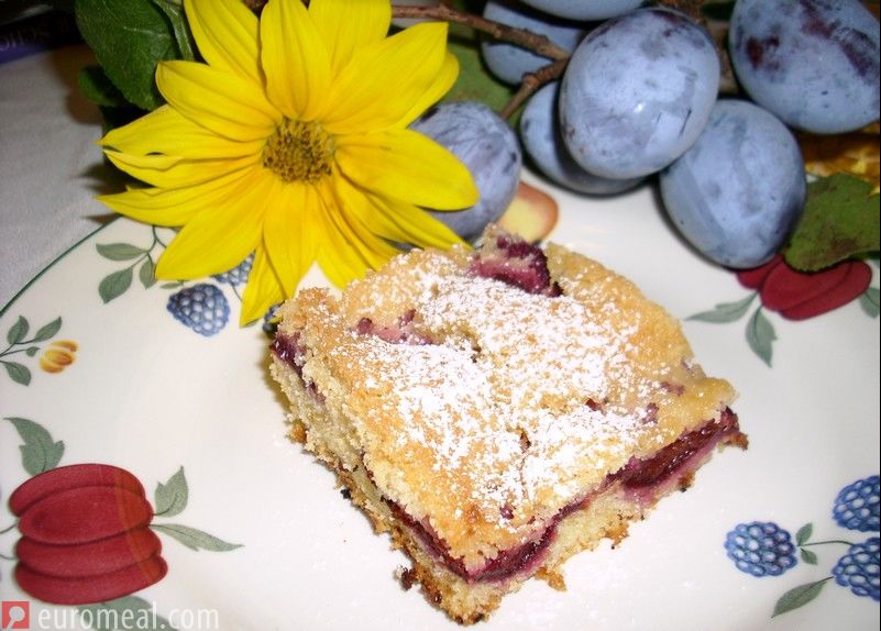 In autumn, fresh dark plums are tempting. They can be used in many different ways. This simple plum cake recipe will also inspire baking beginners. It's quickly prepared sponge dough combined plum halves. It can be eaten instantly for coffee, but it can also be frozen in stock.