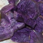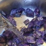 Heat the fat in two pots, fry the yellow potatoes in one pot and the violet potatoes in the other. Add water or soup, season with salt, pepper and grated nutmeg and cook them until they are soft.