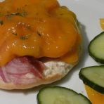 Pastries which are no longer fresh are ideal for this gratinated snack. Even for beginners, this recipe is easy to make. The cream cheese on the pastry makes this dish particularly juicy. Cheddar cheese is used as the colorful finish. In between, there are onions, bacon, peppers and tomatoes.