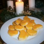 Delicate shortbread biscuits filled with orange marzipan and finished with an orange icing. A wonderful taste experience! Well sealed in a cookie jar, they will stay fresh for up to four weeks.