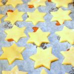 Put the stars on the baking tray and put them in tho oven for 8 - 10 minutes.