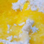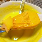 Squeeze out the orange. Add the icing sugar with a pinch of yellow food coloring and the juice. Smooth the glaze using the spoon's back. The glaze should cover the back of the spoon and not drip off too much. Sieve the orange marmalade through a strainer.