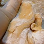 Sieve 50g of icing sugar onto the surface and knead it into the marzipan.
