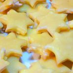 Place the orange-marzipanstars on a glazing grid and let the icingdry. The biscuits can be stored for six weeks in cookie jars.