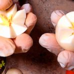Peel the hard-boiled eggs. With a sharp pointed knife, cut the top in a zigzag pattern and carefully lift it off.
