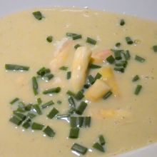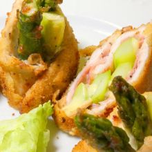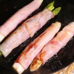 In this recipe, the crisp-cooked asparagus spears are wrapped in ham and fried all around in the pan. The ham contracts during frying, so it sticks without being fixed to the vegetables. This dish is very easy and quickly prepared and it fits as a light main dish or as a warm appetizer.