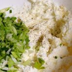 Add the finely chopped vegetables to the spread, season with salt and pepper and mix it thoroughly.