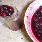Pour the boiling hot cherries into glasses. Immediately close them with the lid, turn them upside down and let them cool.