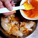 Turn the chicken wings, spred it with the marinade and the coconut flakes.