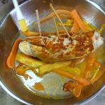 Turn the meat in flour, fry it slowly with the remaining vegetable strips.