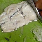 Cut the herring in big stripes, add the fish to the salad.