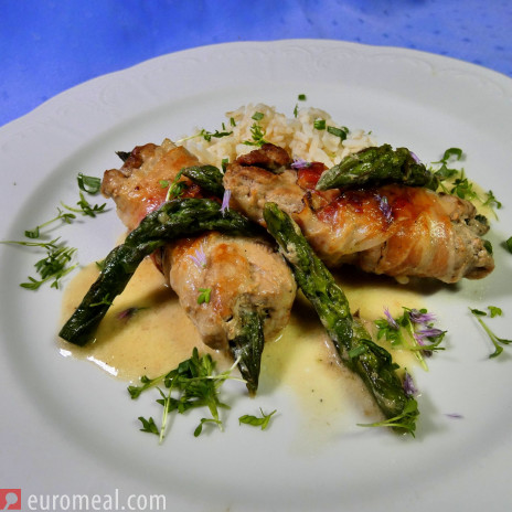 A fine dish that can be served very quickly, without much effort? There is no, but yes. The tender pork fillet with asparagus is ready to cook as quickly as rice needs to be steamed. Asparagus is placed in the meat, then it is wrapped with strips of bacon and fried in the pan. This recipe is ready to serve in less than thirty minutes.