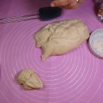 Place the dough on a lightly floured work surface, shape it into a roll and cut off pieces weighing 60 grams.