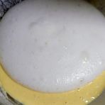 Mix the milk with the flour. Then, gradually, add the egg yolks with to the snow peach. Season with salt.