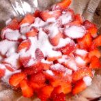 Put the strawberries in a bowl, add sugar and orange juice. Let them stand for ten minutes and stir gently several times.
