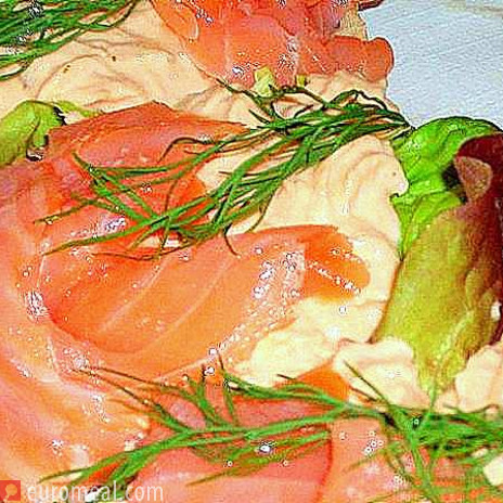 Salmon canapés can be served as an appetizer, at the buffet, on New Year's Eve or at a party. Salmon has a luxurious status, so it should not be missed at any occasion. These canapés are a combination of salmon filling and salmon slices.