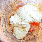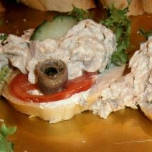 Work together the cooled salmon and the cream cheese using the blender to create a spread. Slice the baguette and coat it with the mixture.