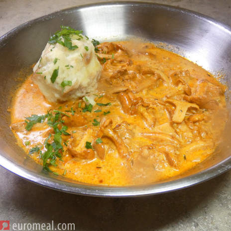 Not only mushroom pickers love chanterelles, you can also find them in the markets from late summer and autumn. You can easily prepare a delicious goulash from these peppery-tasting mushrooms in less than 30 minutes. A delicious hearty vegetarian dish. that everyone likes.