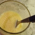 Heat butter in a pan. It is not supposed to turn brown. When it foams, pour the egg-mixture into the pan.