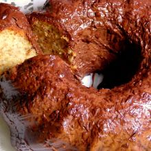 Strain the pineapple slices and set the juice aside. Cut the fruit for the dough into small pieces and mix with the flour with thecoconut flakes. Brush the baking pan with butter and sprinkle it with breadcrumbs. Preheat the oven to 180°C convection.