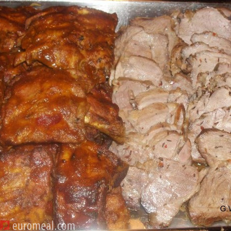 The meatloaf is filled with chanpignons. It is juicy inside and has a crispy crust on the outside. A simple and tasty roast that always tastes good.