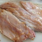 Karpfenfilets mit Chilipulver, Pfeffer, Knoblauch und Paprika einreiben.